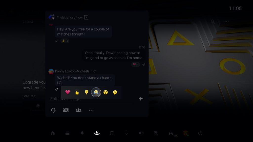 A fines de este mes, también implementaremos gradualmente algunas nuevas funciones para la PS App de manera global, en iOS y Android. Al igual que en las actualizaciones de la consola PS5, podrás reaccionar a los mensajes con emojis y ver una vista previa de la pantalla compartida de alguien antes de unirte al grupo en la PS App.