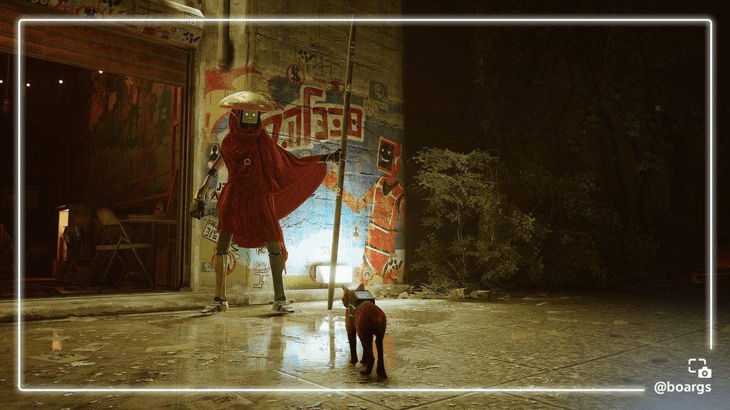 Ni el pequeño gato perdido puede convencer a este robot guardián para que lo deje pasar; imagen de @boargs.